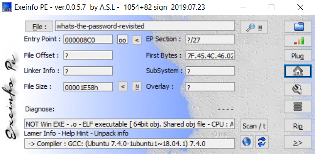 First, I drop the file into exeinfoPE to see some information