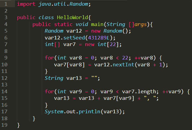 This’s a small Java crackme :v, in this challenge there’s 4 part of 4 loops in Crackme function, so in functions, you have to watch and ask your self: which loop need to be reversed ?, then in 4th loop, this is a random-seed + xor encryption, you can use java in their chall to calc the seed :V, here’s my solution example: