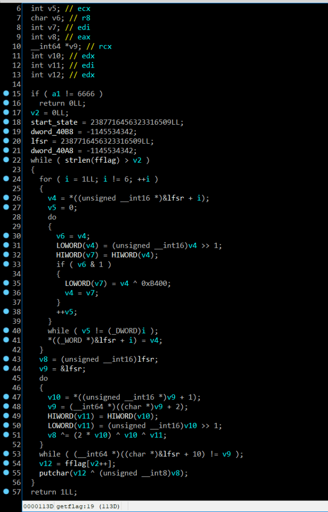 if a1 != 6666 is the password to get flag, you can write a script to print result, the best way to solve it is use ctypes to call getflag function, here’s my solution :v